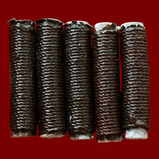 ชุด 5 ดอก...ตะกรุดเขียวเกี้ยวนาง (มหาเสน่ห์ เมตตาดี) ปี 2555 หลวงปู่สิงห์ วัดบ้านป่าตะแบง จ.นครราชสีมา พร้อมซองรูปเดิมจากวัด สภาพพระตามรูปที่ลงทุกประการ (ขนาดยาว 1.5 นิ้ว)