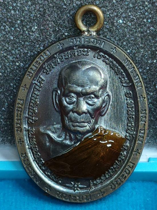 เหรียญชนะจน65 หลวงพ่อพัฒน์ วัดห้วยด้วน ชนวนโบราณห่วงเชื่อม ลงยาจีวร เลข1495 จมูกร้อยมีกล่อง