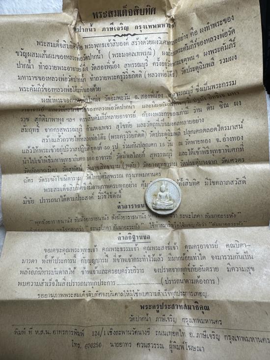 พระสมเด็จสิบทิศ พิมพ์ใหญ่ วัดปากน้ำ ภาษีเจริญ ทำถวาย พรครูวิริยกิตติ หลวงปู่โต๊ะ วัดประดู่ฉิมพลี พร้อมใบคำอาราธนา คำอธิฐานขอ |