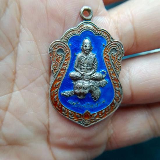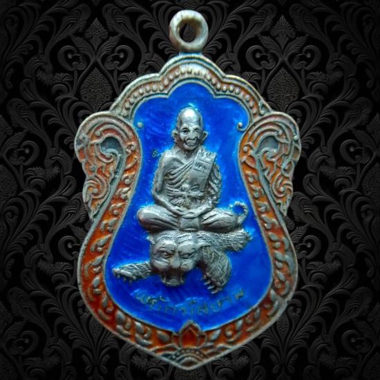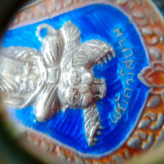 เหรียญพยัคฆ์สยาม หลวงพ่อจ้อย วัดหนองน้ำเขียว ชลบุรี ปี38 บล๊อคตีนใหญ่ เนื้อเงินลงยา |