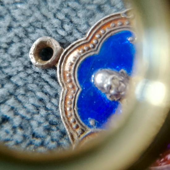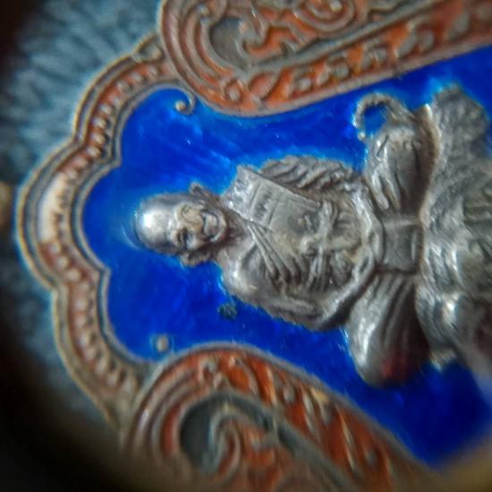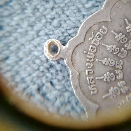 พระครูวิทิตพัฒนาการ (จ้อย "จาดแก้ว" พุทธสโร) วัดหนองน้ำเขียว ต.คลองกิ่ว อ.บ้านบึง จ.ชลบุรี หลังยันต์ เนื้อเงินลงยา ปี 2538