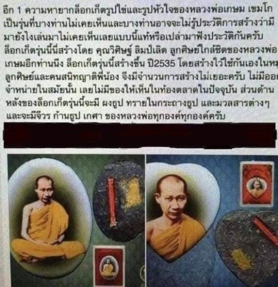 ล็อกเก็ตหลวงพ่อเกษม เขมโก ขาวดำ 3 นะ ด้านหลังมีผงธูปมงคลหลวงพ่อ จีวร เกศา ผงมวลสารรุ่นต่างๆ และอีกมากมายในพิมพ์ชัดเจน สร้างขึ้นปี2535 รุ่นนี้สร้างหลายพิมพ์ |