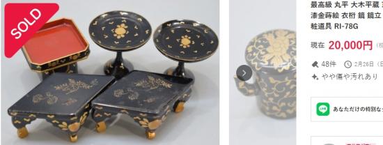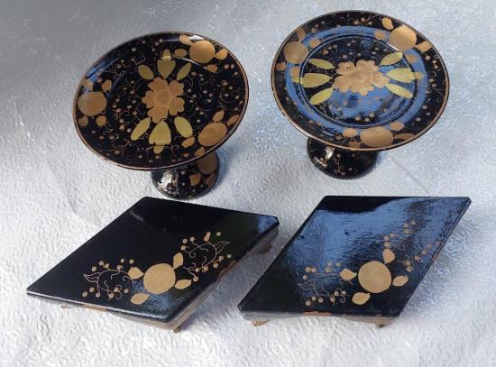 ชุดเครื่องบูชาขนาดเล็ก 4 ชิ้น เครื่องเขินญี่ปุ่น (ชิกกิ) ขนาดเล็ก ซึ่งตกแต่งด้วยเทคนิคที่เรียกว่า มากิเอะ (Maki-e) |