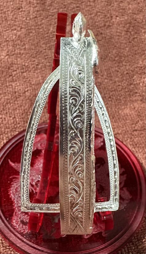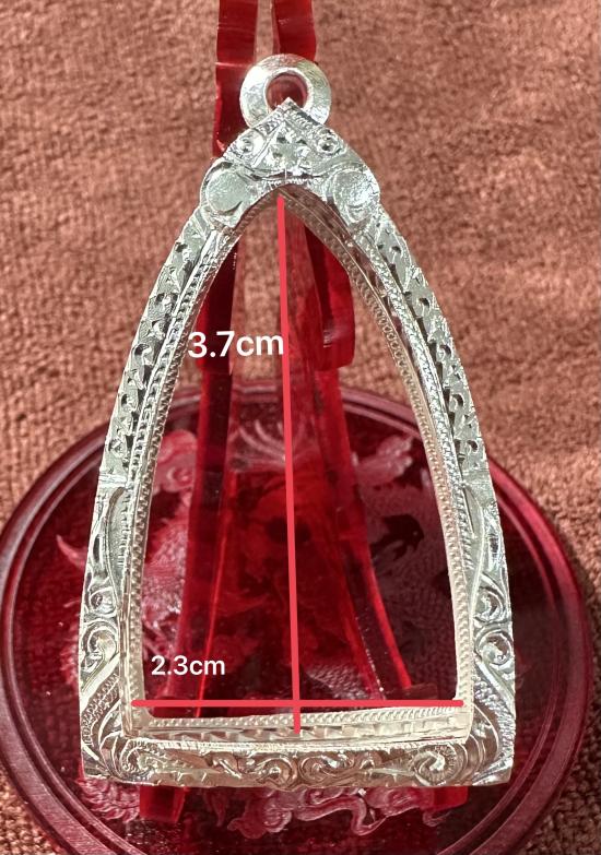 กรอบเงินแกะลายยกซุ้มพิมพ์หลวงปู่ทวด พิมพ์เตารีด |