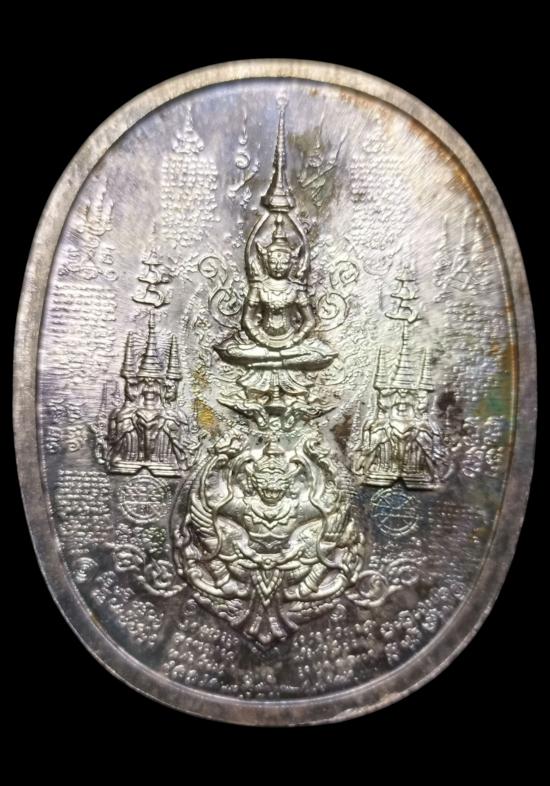 เหรียญมหายันต์สมเด็จพระนเรศวรมหาราช พิมพ์ทรงยืนหลั่งน้ำสิโนทก เนื้อกะไหล่เงิน อ.หม่อมสร้าง |