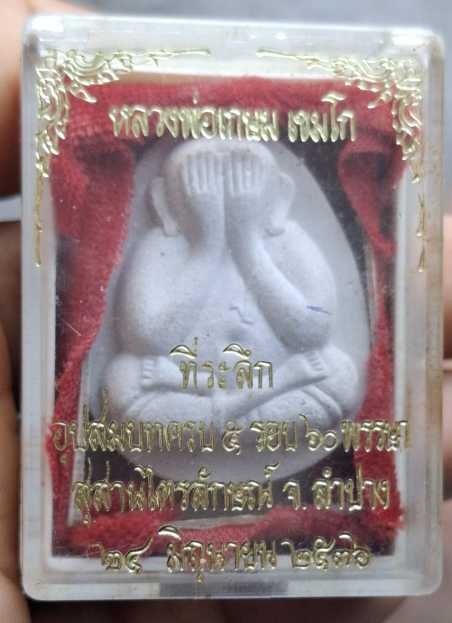พระปิดตาจัมโบ้ รุ่นแรก หลวงพ่อเกษม เขมโก ปี36 ( หลังยันต์ดวงมงคล) จัดสร้างเนื่องในงานที่ระลึก อุปสมบทครบ5รอบ 60พรรษา หลวงพ่อเกษมปลุกเสก 24 มิถุนายน ปี36 สุสานไตรลักษณ์จังหวัดลำปาง