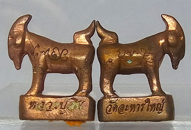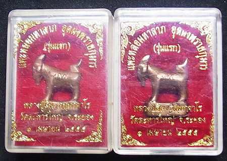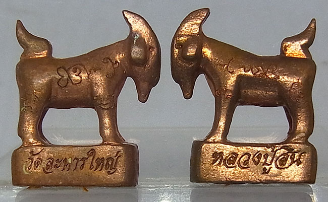 ** แพะหล่อมหาลาภ รุ่นแรก หลวงพ่อสิน เนื้อทองแดง ใต้ฐานอุดผงพรายกุมาร 2 องค์ พร้อมกล่องเดิมๆ ** |