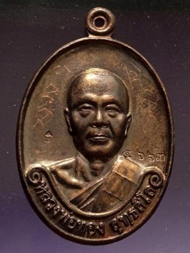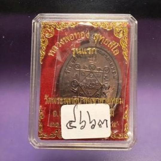 100 เดียว หลวงพ่อทอง รุ่นแรก ทองแดง ยันต์แปด #4663 กล่องเดิม ตามรูป