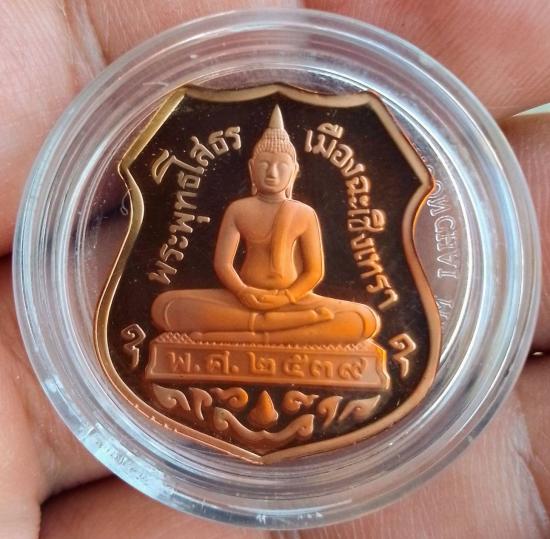 เหรียญขัดเงา 3 มิติ พระพุทธโสธร รุ่นย้อนยุคสร้างโบสถ์ วัดโสธรวรารามวรวิหาร เนื้อทองแดงขัดเงาพ่นทราย ปี 2539 |
