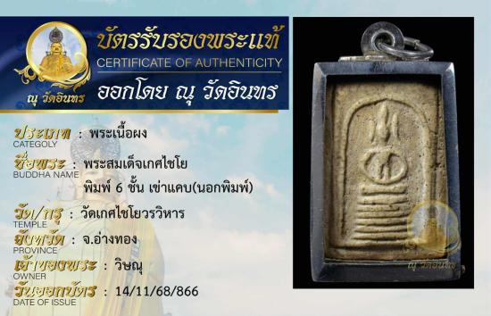 ลงไหม่ครับไปออกบัตรเพิ่มเติมมาครับ สมเด็จวัดเกศไชโย (นอกพิมพ์) 6ชั้นเข่าแคบ สภาพใช้เนื้อจัด |