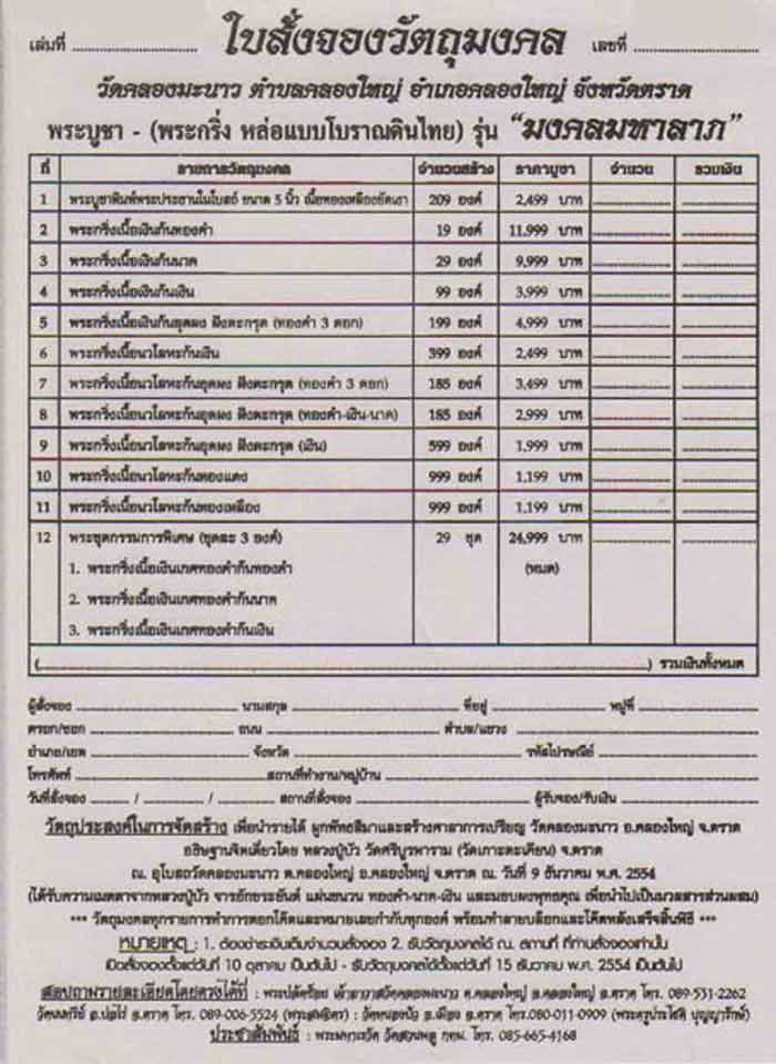 สภาพงดงามสมบูรณ์ พร้อมกล่องเดิม เนื้อเงินตะกรุดมองคำ3ดอก สร้างเพืยง199องค์ ราคาจอง4999 บาท