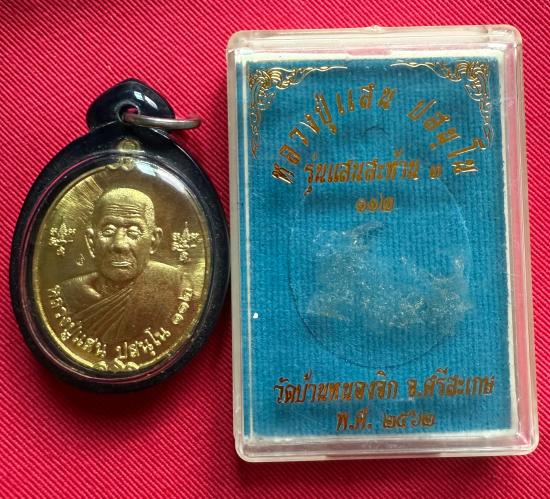 100...เหรียญหลวงปู่แสน วัดบ้านหนองจิก จ. ศรีสะเกษ รุ่นแสนสะท้าน 3 ปี 2562 เนื้อทองฝาบาตร หมายเลข 2644 ติดสายสิญจน์ จีวร เส้นเกศา |