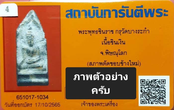 รายละเอียด พระพุทธชินราช กรุบางระกำ เนื้อชินเงิน จ.พิษณุโลก พระพิมพ์ยอดนิยมของเมืองพิษณุโลกอีกพิมพ์หนึ่งครับ ถือว่าเป็นพระดีที่ราคายังไม่แรงมากนักของเมืองพิษณุโลก องค์นี้พระสภาพสวย พระติดหน้าตาไรๆ พระผิวปรอทขาวๆ เดิมๆ คราบกรุตามผิวพระยังเดิมๆ รายละเอียดของพระคม ชัด พระหนา แข็งแรง สภาพสมบูรณ์ครับ พระขนาดเล็ก น่ารัก กำลังน่าคล้องเลยครับ พระชินราชกรุบางระกำถือว่าเป็นพระที่มีพุทธศิลป์สวยงาม เข้มขลัง ในปัจจุบันเริ่มหายากแล้วครับ จัดเป็นพระชุดเล็ก ที่น่าใช้อีกองค์หนึ่งครับ พุทธคุณ เด่นดัง ในเรื่อง มหาอำนาจ แคล้วคลาด เมตตา ค้าขายดี เรียกว่าชื่อพระพุทธชินราช ถือว่าครอบจักรวาลครับ ใช้แทนพระพุทธชินราช กรุวัดพระศรีฯ ราคาหลักแสนได้สบายๆ เลยครับ เพราะเป็นพระที่สร้างในยุคใกล้เคียงกัน เป็นพระเมืองเดียวกันครับ เรียกว่าพุทธคุณไม่ได้แตกต่าง อะไรกันมากมายครับ น่าใช้มากครับ พระสมบูรณ์ หนาแข็งแรง ไม่มีอุด-ซ่อม ครับ