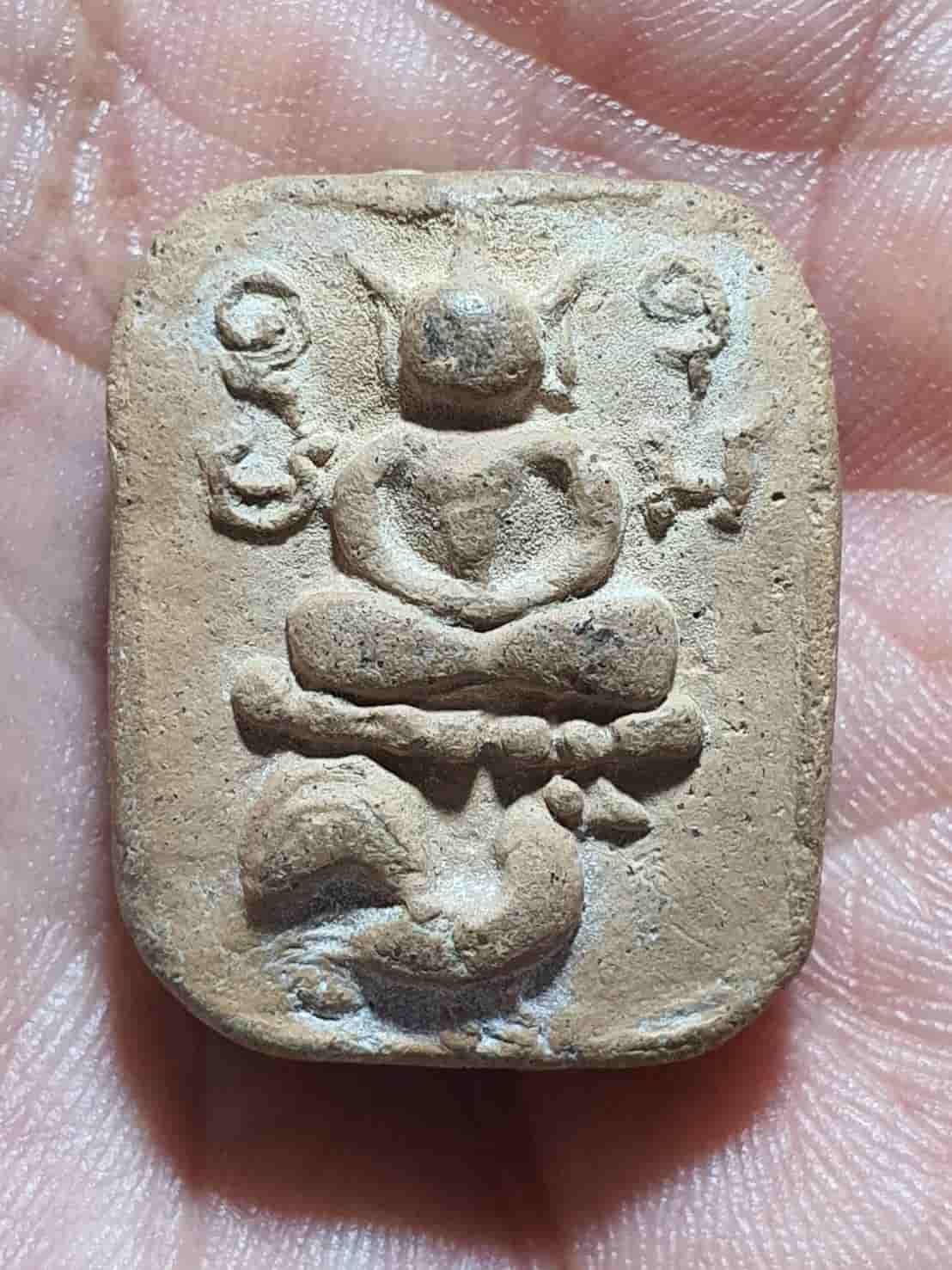 พระพิมพ์ขี่ไก่หางพวง เนื้อดินเผา ของหลวงพ่อฤาษีลิงดำ (พระมหาวีระ ถาวโร) วัดท่าซุง จังหวัดอุทัยธานี ซึ่งสร้างในยุคต้นประมาณปี พ.ศ. 2496 |