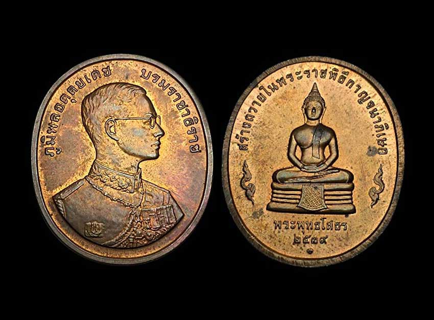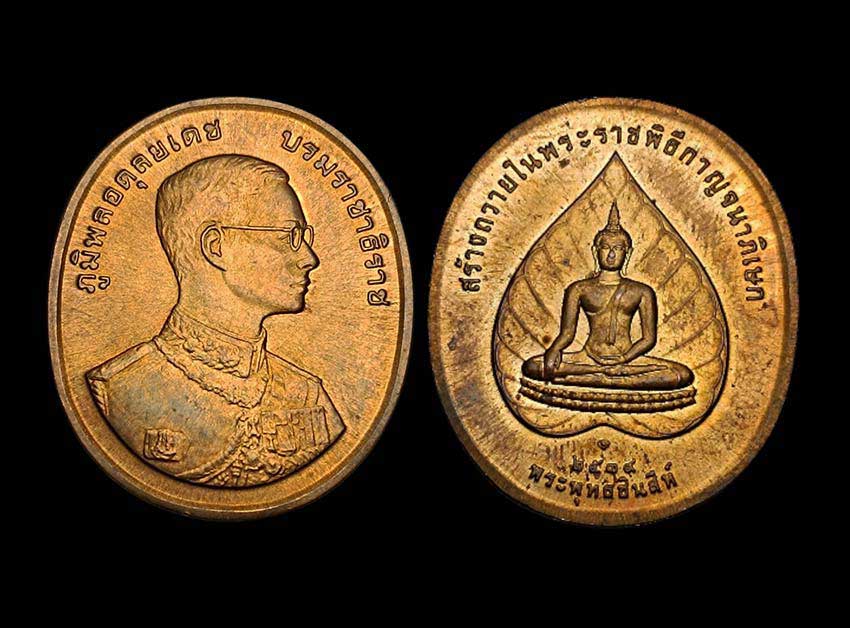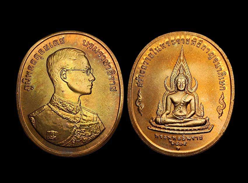 พระเหรียญชุดพระพุทธปัญจภาคี ชุด 5 เหรียญ ที่ระลึกพระราชพิธีกาญจนาภิเษก ในหลวงรัชกาลที่ 9 หลังหลวงโสธร, หลังพระพุทธชินราช, หลังพระพุทธชินสีห์, หลังพระมงคลบพิตร, หลังพระนิรันตราย ปี พ.ศ.2539