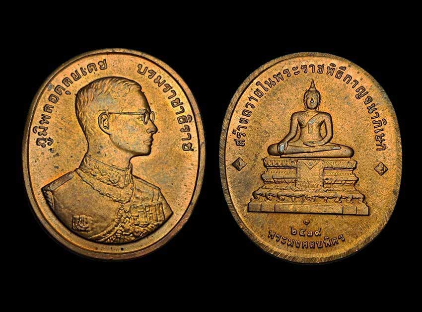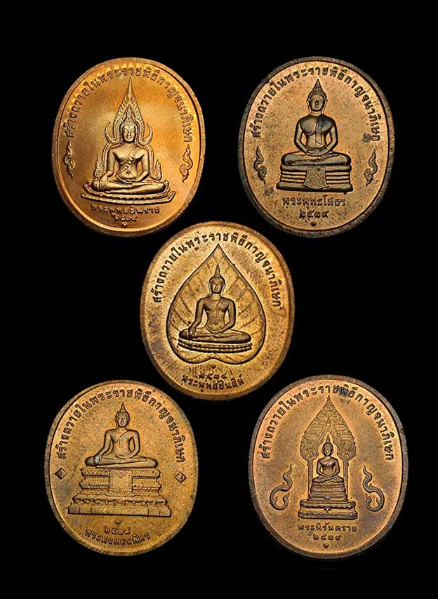 พระเหรียญชุดพระพุทธปัญจภาคี ชุด 5 เหรียญ ที่ระลึกพระราชพิธีกาญจนาภิเษก ในหลวงรัชกาลที่ 9 หลังหลวงโสธร, หลังพระพุทธชินราช, หลังพระพุทธชินสีห์, หลังพระมงคลบพิตร, หลังพระนิรันตราย ปี พ.ศ.2539 (ไม่มีกล่อง)