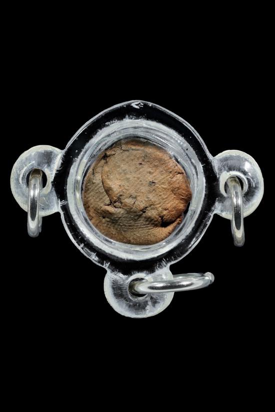 พระเม็ดกระดุมศรีวิชัย พิมพ์ต้อ กรุพุนพิน จ.สุราษฎร์ธานี เนื้อดินเผา อายุกว่า 1000 ปี สภาพเดิมๆจากกรุ เลี่ยมพร้อมใช้ครับ
