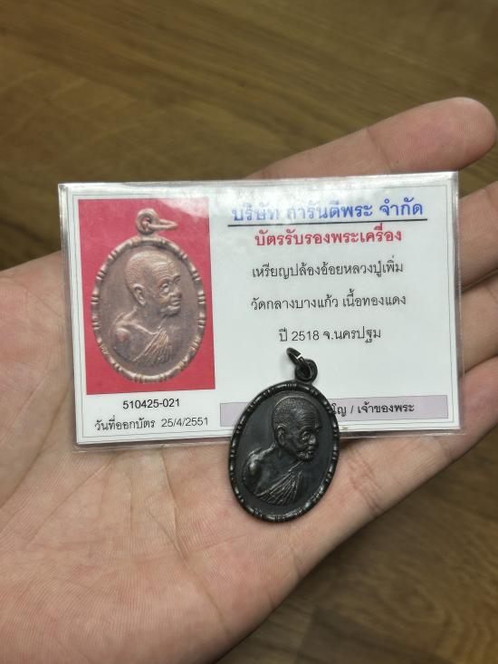 เหรียญปล้องอ้อย หลวงปู่เพิ่ม วัดกลางบางแก้ว ปี 2518 มีบัตรการันตีพระ