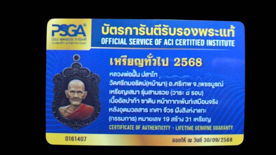 เหรียญหลวงปู่ฝั้น ปสาโท พร้อมบัตรรับรองPSGA ป๋องสุพรรณการันตี |