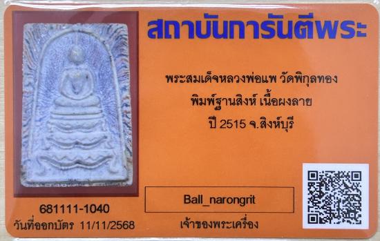 พระสมเด็จหลวงพ่อแพ วัดพิกุลทอง พิมพ์ฐานสิงห์ เนื้อผงลาย ปี 2515 จ.สิงห์บุรี |