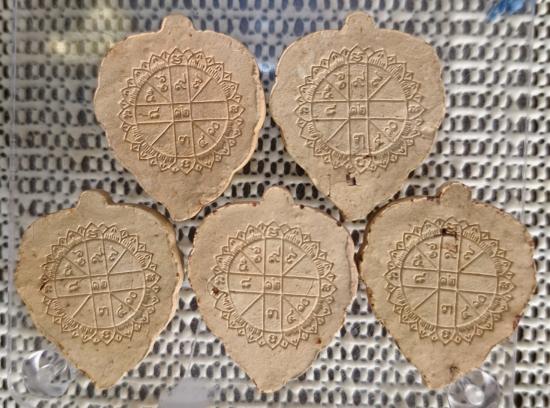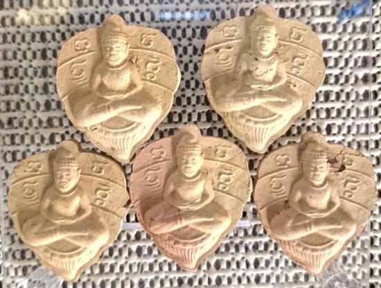 ใบโพธิ์ใหญ่ เนื้อดินเผา หลังยันต์ดวง หลวงพ่อลีวัดอโศ ปี 48 ไหแตก มาพร้อมกัน 5 องค์ และ แหนบจัมโบ้ เนื้อสามกษัตริย์ เลี่ยมกรอบทองไมครอน สวยงามมาก จำนวน 1 องค์ ของหลวงพ่อลีวัดอโศการามจังหวัดสมุทรปราการ |