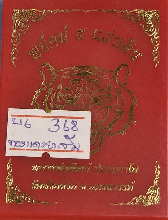 หน้ากากเสือ บุญพยัคฆ์ 5 แผ่นดิน หลวงพ่อพัฒน์วัดห้วยด้วน เนื้อทองแดงผิวไฟ ลงยาส้ม Number 368 มาพร้อมกล่องเดิม |