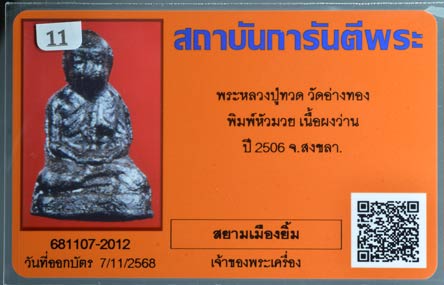 พระหลวงปู่ทวด วัดอ่างทอง พิมพ์หัวมวย เนื้อผงว่าน ปี2506