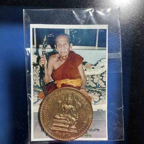 เหรียญพรหมจักรสีห์ เนื้อทองแดง รุ่นอายุยืน หลวงปู่หมุน วัดบ้านจาน ปี 2546 |