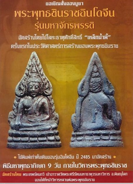 จัดสร้างโดยใช้โลหะธาตุศักดิ์สิทธิ์ เหล็กน้ำพี้ เป็นครั้งแรกในประวัติศาสตร์การสร้างของพระพุทธชินราช ใช้พิมพ์ดั้งเดิมของรุ่นอินโดจีน ปี 2485 มาจัดสร้างโดยพระเทพรัตนกวี เจ้าอาวาสวัดพระศรีรัตนมหาธาตุวรมหาวิหาร และประกอบพิธีมหาพุทธาภิเษก ณ วิหารพระพุทธชินราช เมืองพิษณุโลก นับเป็นประวัติศาสตร์ของพระพุทธชินราชที่มีการประกอบพิธีถึง 9 วัน 9 คืน (9-17 มกราคม 2545) มีพระครูวิธานศาสนกิจ (ไพรินทร์) เป็นเจ้าพิธี และ พ.อ. เทพ นันตา อนุศาสนจารย์กองทัพภาพที่ 3 และ นายอนุรักษ์เอื้ออนุวงค์ เป็นผู้ช่วยฝ่ายพิธีกรรม โดยพระเกจิอาจารย์รวม 108 รูป โดย