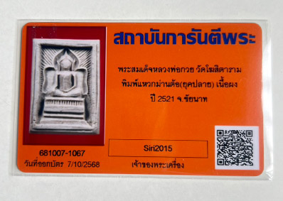 พระสมเด็จแหวกม่านหลวงพ่อกวย ปี 2521 เนื้อผง พิมพ์ต้อ วัดโฆสิตาราม จ.ชัยนาท ออกบัตรแล้วเรียบร้อย (1) |