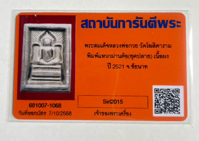 พระสมเด็จแหวกม่านหลวงพ่อกวย ปี 2521 เนื้อผง พิมพ์ต้อ วัดโฆสิตาราม จ.ชัยนาท ออกบัตรแล้วเรียบร้อย (2) |