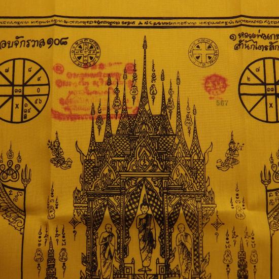 ผืนใหญ่..ขนาด19 X 29 นิ้ว... ผ้ายันต์ครอบจักรวาล 108 หลวงพ่อเกษม รุ่นพุทธคุณ ปี2538 เลข 567 ... 68.9.26 |