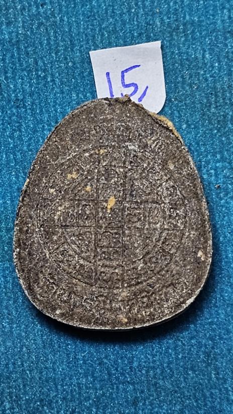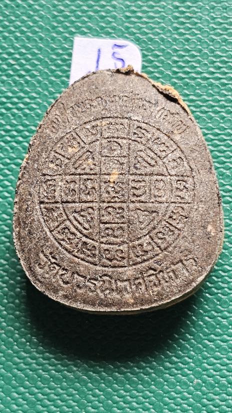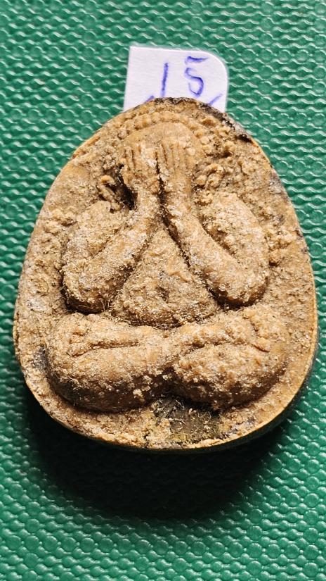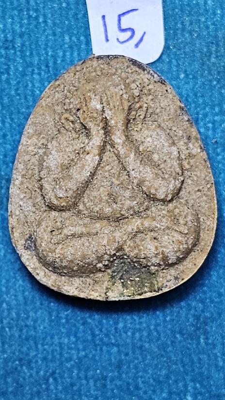 พระปิดตาหลังยันต์ดวง เนื้อ2สี เนื้อเกสรและเนื้อใบลาน มีคล้ายคราบน้ำมนต์ทั่วองค์พระ(15) |