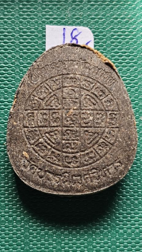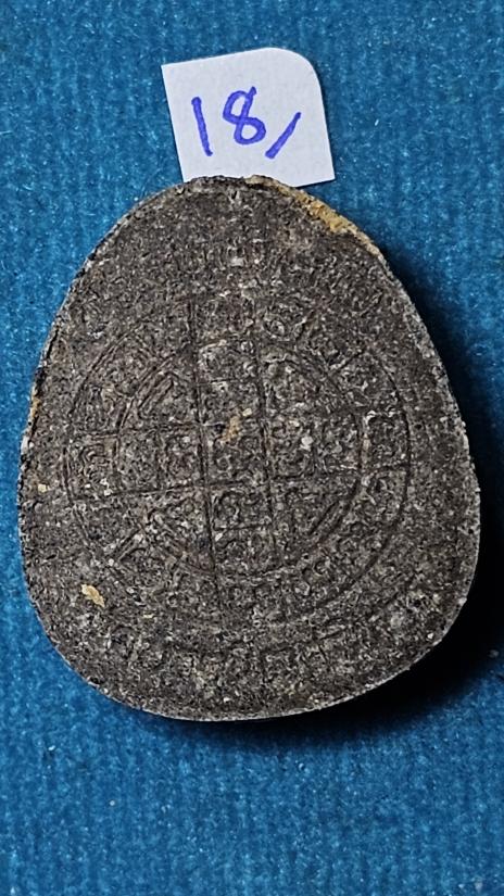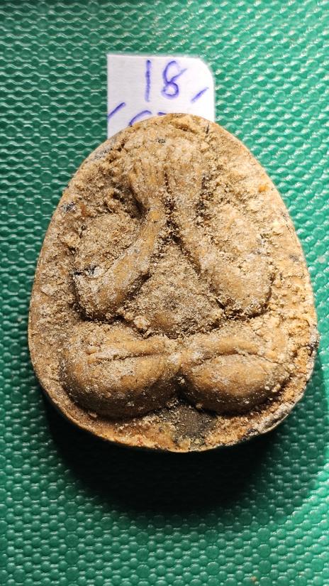 พระปิดตาหลังยันต์ดวง เนื้อ2สี เนื้อเกสรและเนื้อใบลาน มีคล้ายคราบน้ำมนต์ทั่วองค์พระ(18) |