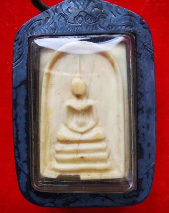 พระสมเด็จงาแกะจับขอบเงินครับขนาดกว้าง1.6ซม.Xสูง2.5ซม.ครับ