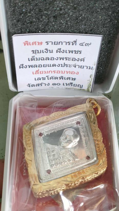 เหรียญกรมหลวงชุมพร รุ่น"บูรณะอุโบสถ"วัดท้ายน้ำ(วัดเก่าหลวงพ่อเงิน)จ.พิจิตร พิมพ์สี่เหลี่ยมข้าวหลามตัด เนื้อชุบเงิน ฝังเพชรเต็มฉลองพระองค์(15เม็ด) ฝังพลอยแดงประจำยาม เลี่ยมกรอบทอง หมายหมาย ๑๑๑๑ (1111) พร้อมกล่อง เหรียญสวยมากคับ |