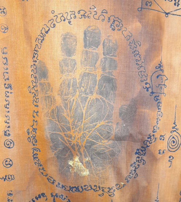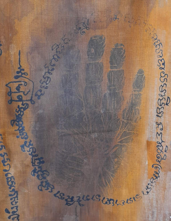 +++(( วัดใจเคาะเดียวสุดยอดหายาก 100บ. )) ผ้ายันต์ ฝ่ามือ ผืนใหญ่ หลวงปู่ทอง วัดป่ากอ สงขลา ผืนใหญ่อลังการ สูงประมาณ 140ซ.ม กว้าง 80ซ.ม เข้มขลังผืนใหญ่มากครับ มีผุขาด มีปิดทองเก่าด้วยครับ ดึงจากผนังมา
