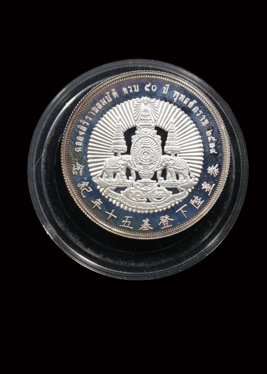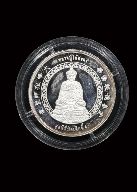 เหรียญหลวงปู่ไต้ฮงกง รุ่นกาญจนาภิเษก ฉลองสิริราชสมบัติ ครบ 50 ปี ปี2539 ((( เนื้อเงิน ขัดเงา ))) เก่าเก็บ *ไม่มีกล่องเดิม*
