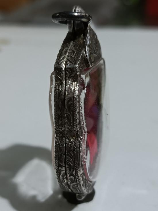 ตลับเงินเสมาเก่าแท้ เปิดหลังแกะลายกนกลึกงานเก่า ใส่เหรียญเสมาทุกรุ่น ลป.ทวด หนาหนัก 11.72 กรัม งานเก่าสนามแพงหมดแล้วครับ |