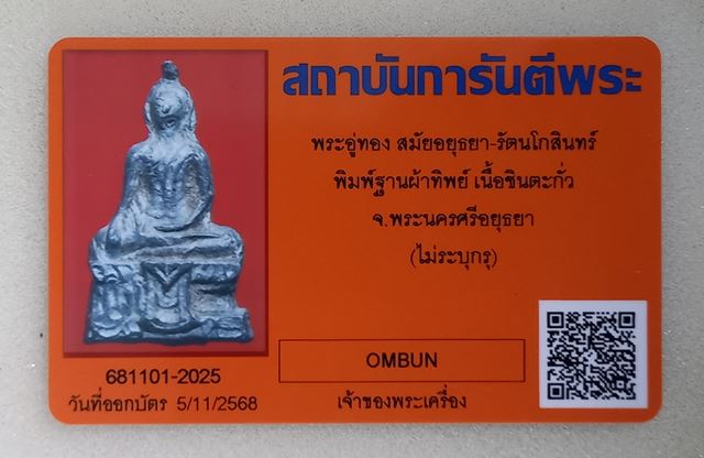 รายละเอียด +++ (..วัดใจ..) ...พระอู่ทอง พิมพ์ฐานผ้าทิพย์ (เล็ก) เนื้อชินเงิน กรุวัดใหญ่ชัยมงคล จ.พระนครศรีอยุธยา + บัตร G-Pra +++