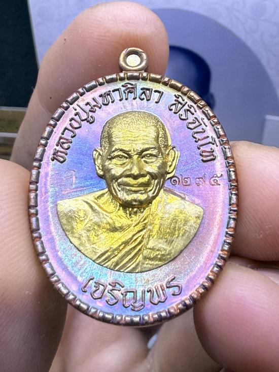 +++เคาะเดียว เหรียญเจริญพรล่าง หลวงปู่มหาศิลา ปี64 เนื้อทองแดงหน้ากากทองทิพย์ หมายเลข 1275 ผิวสวยๆพร้อมกล่อง+++