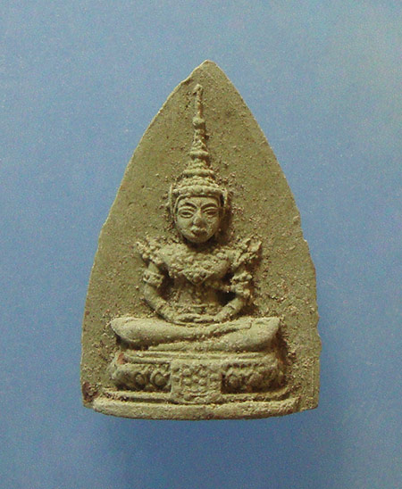 พระแก้วพิมพ์เล็กเนื้อใบตอง หลังโรยเกษาและผงตะไบทองครับ |