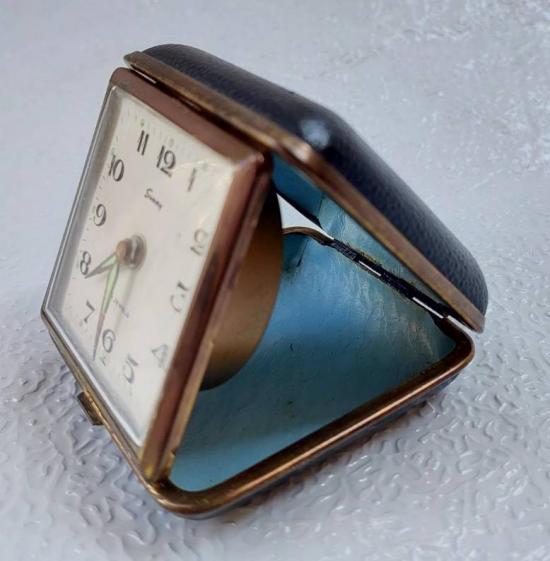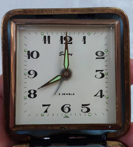 ***วัดใจ***นาฬิกาไขลาน (Made in Japan) นาฬิกาปลุกเดินทางแบบพับได้วินเทจ เรโทร ตลับแป้ง |