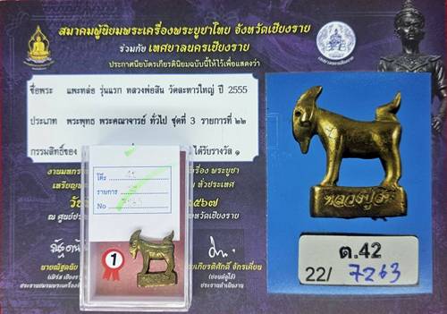แพะหล่อ รุ่นแรก หลวงพ่อสิน วัดละหารใหญ่ เนื้อทองฝาบาตร ปี2555 ติดรางวัลที่1 |