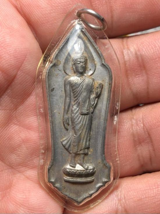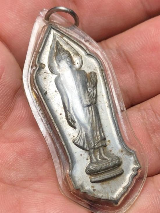 เหรียญพระพุทธลีลา 25 ศตวรรษ ปี 2500 เนื้อชิน เลี่ยมเก่า สภาพสวยเดิมๆครับ