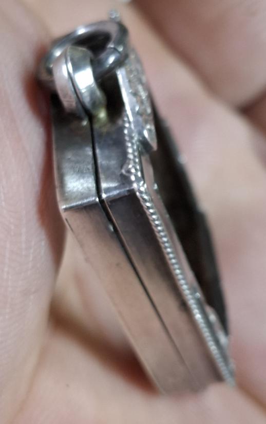 ตลับเงินงานเก่า ทรงสี่เหลี่ยม สภาพสวย ขนาดจอ 2.1x2.8 ซม.