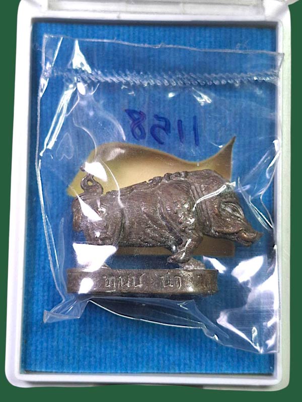 หมูคูณทองค้ำ คูณ หนุน นำ เนื้อทองแดงเถื่อน เลข1158 ใต้ฐานบรรจุผงพุทธคุณ |