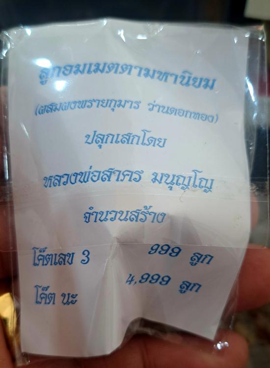 ลูกอมมียันต์โค๊ตเลข 3 หลวงพ่อสาคร เมตตามหานิยม ผงพรายกุมาร วัดหนองกรับ พร้อมซองเดิม จะสร้าง 999 องค์ |