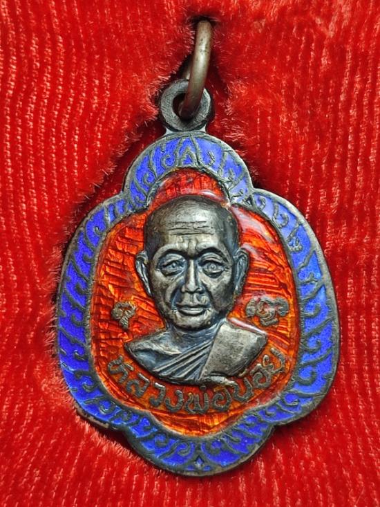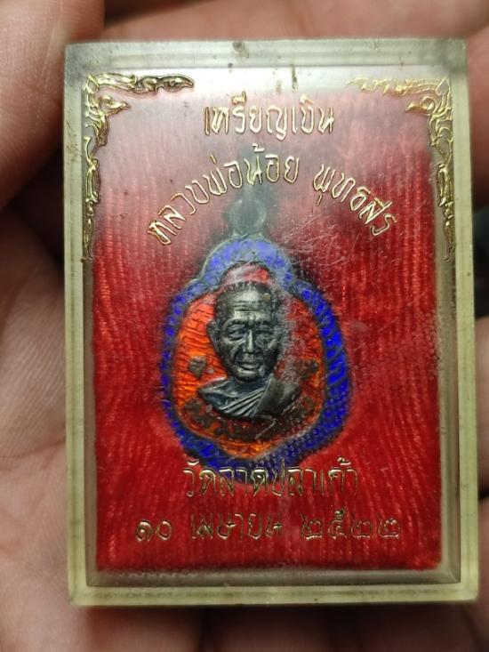 เคาะเดียวแดง เหรียญเนื้อเงินลงยา หลวงพ่อน้อย พุทธสร วัดลาดปลาเค้า กรุงเทพฯ