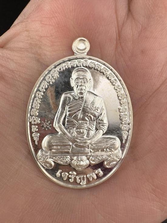 เหรียญเจริญพรล่างหลวงพ่อเพี้ยน เนื้อเงิน เลขโค้ด1974 ปี 60